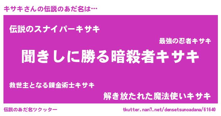 | ファンタジー風あだ名 | 『カークキサラー』『ゼキサトゥ』 |