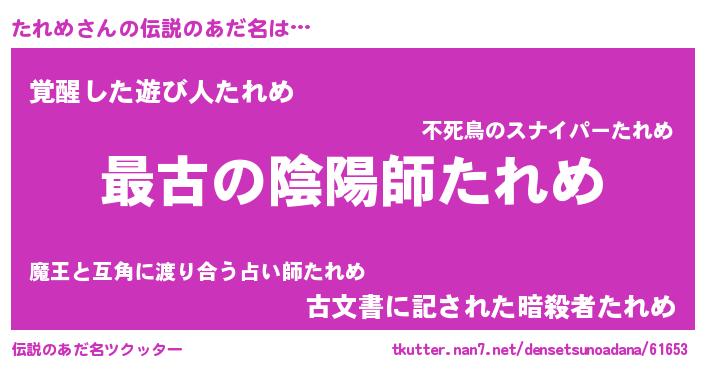 | ヒーロー風カッコイイあだ名 | 『ウルトラたれめマン』『天弓騎士タレ』 |