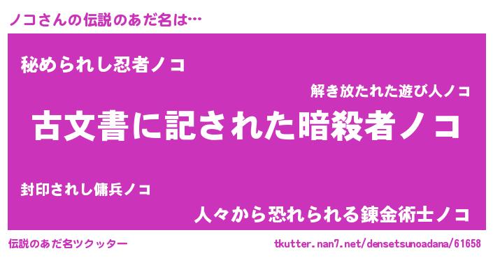 | ヒーロー風カッコイイあだ名 | 『ネオノコ』『ウルトラノコマン』 |