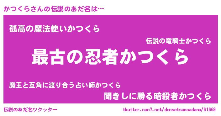 | ファンタジー風あだ名 | 『エターナルカツクラー』『ゼカツトゥ』 |