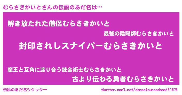 | 意味不明あだ名 | 『自称むらさきかいと』 |