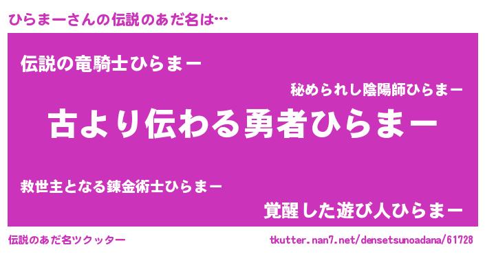 | 意味不明あだ名 | 『自称ひらまー』『永久保存ひらまー』 |