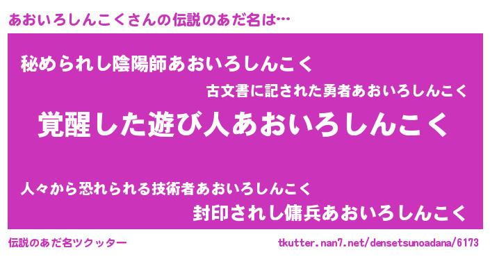 | 男性向けラノベタイトル風あだ名 | 『この素晴らしい世界にあおいろしんこくを!』 |