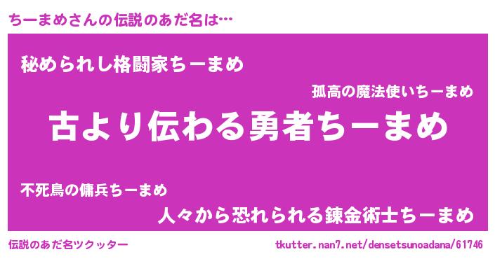 | 意味不明あだ名 | 『住所不定無職ちーまめ(79歳)』 |