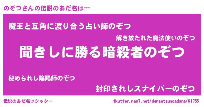 | 意味不明あだ名 | 『住所不定無職のぞつ(47歳)』 |