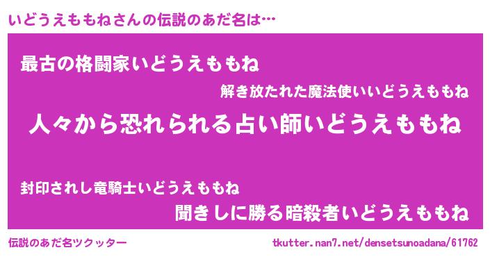 | 意味不明あだ名 | 『住所不定無職いどうえももね(39歳)』 |