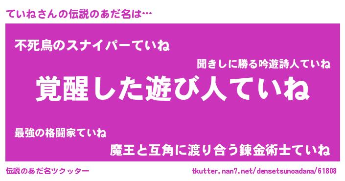 | ヘコむあだ名 | 『ていぷりん』『ていっふぃ~』 |