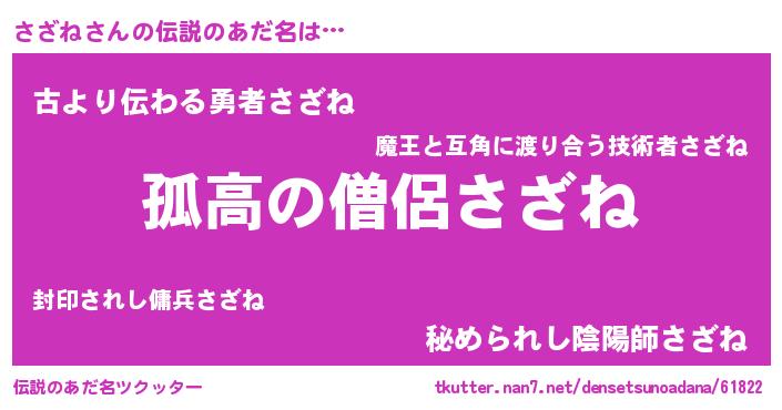 | 意味不明あだ名 | 『とにかく怪しいさざね』『自称さざね』 |