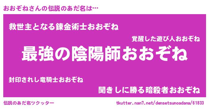 | ファンタジー風あだ名 | 『ゼオオトゥ』『エターナルオオゾネー』 |