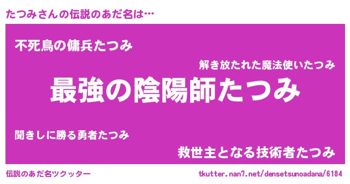 | ヒーロー風カッコイイあだ名 | 『ウルトラたつみマン』『スーパータツミ』 |