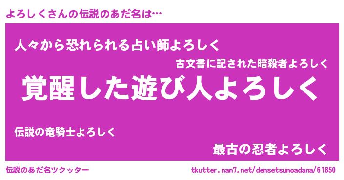 | 意味不明あだ名 | 『とにかく怪しいよろしく』 |