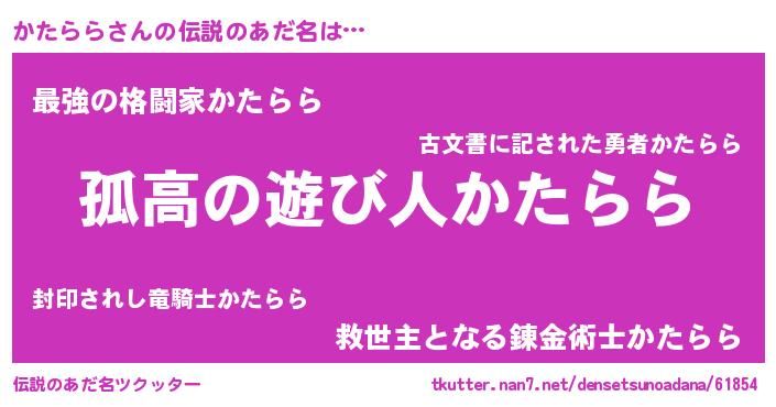 | ヒーロー風カッコイイあだ名 | 『仮面カタダー』『天弓騎士カタ』 |
