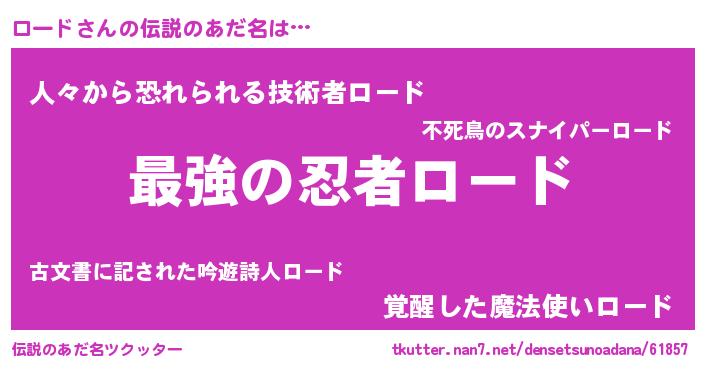 | 男性向けラノベタイトル風あだ名 | 『この素晴らしい世界にロードを!』 |