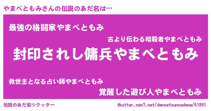 | 胡散臭い通販商品みたいなあだ名 | 『億万長者になれる水晶球…その名も「やまべともみ」』 |