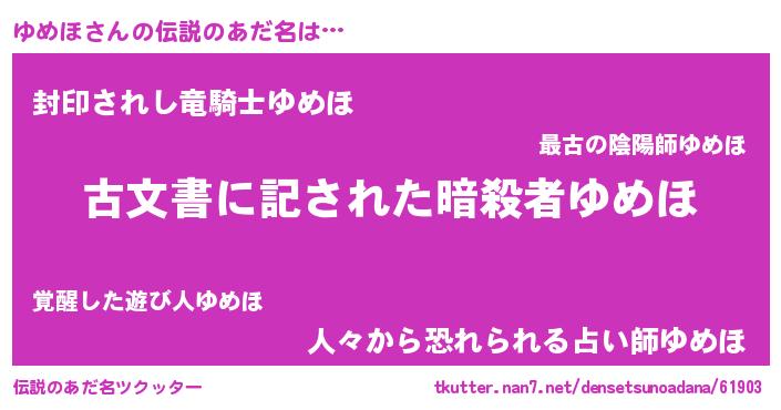 | ヒーロー風カッコイイあだ名 | 『ネオユメホ』『スーパーユメホ』 |