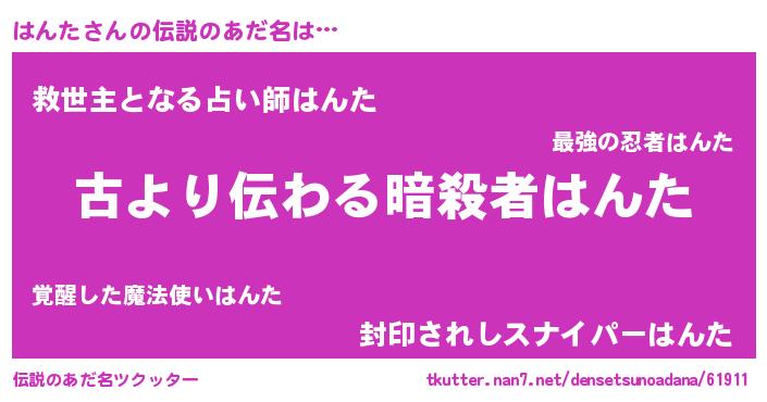 | 意味不明あだ名 | 『住所不定無職はんた(40歳)』『自称はんた』 |
