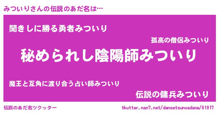 | 男性向けラノベタイトル風あだ名 | 『緋弾のミツイリ』『ミツイリスレイヤー』 |