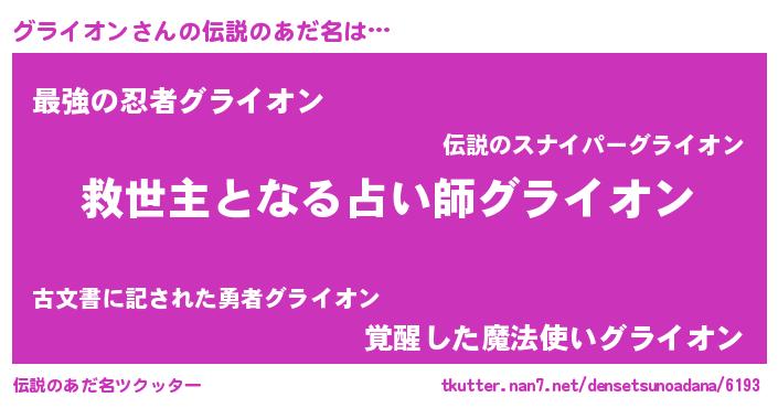 | ヒーロー風カッコイイあだ名 | 『天空の使者グライオン』『炎刃騎士グラ』 |