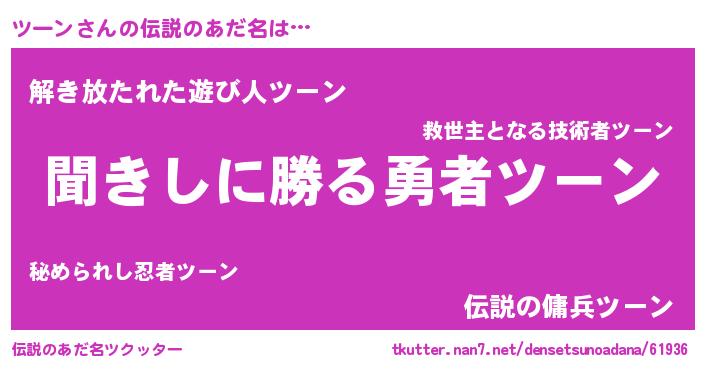 | 意味不明あだ名 | 『しいたけ科ツーン属』『永久保存ツーン』 |