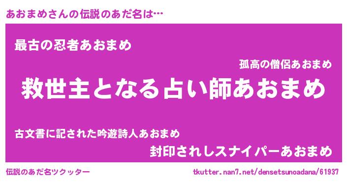 | ヒーロー風カッコイイあだ名 | 『天空の使者あおまめ』『仮面アオダー』 |