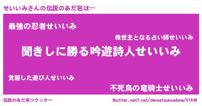 | ヒーロー風カッコイイあだ名 | 『仮面セイダー』『ネオセイイミ』 |