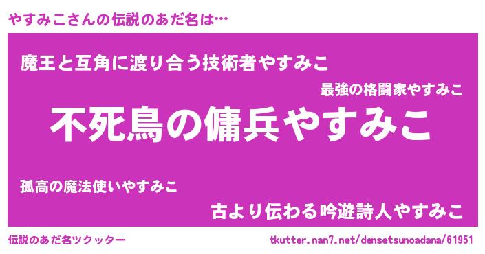 | ヒーロー風カッコイイあだ名 | 『サイバー戦士ヤスミコ』『仮面ヤスダー』 |