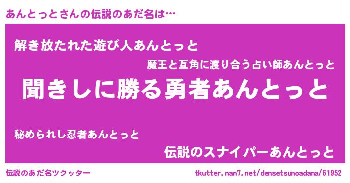 | 意味不明あだ名 | 『永久保存あんとっと』『自称あんとっと』 |