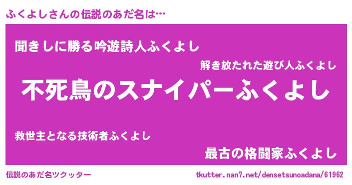 | ヒーロー風カッコイイあだ名 | 『スーパーフクヨシ』『ネオフクヨシ』 |