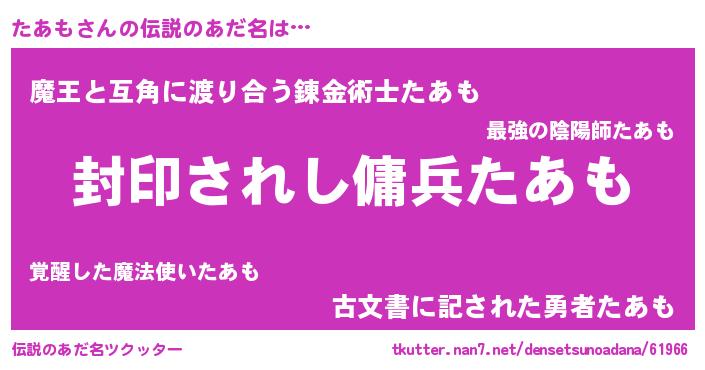 | 胡散臭い通販商品みたいなあだ名 | 『億万長者になれる水晶球…その名も「たあも」』 |