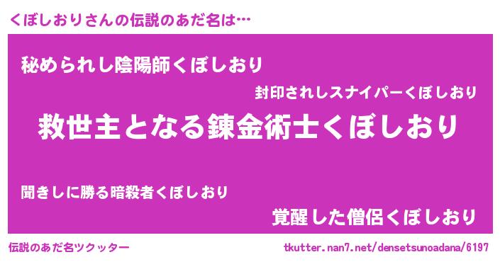 | ヒーロー風カッコイイあだ名 | 『天空の使者くぼしおり』『天弓騎士クボ』 |