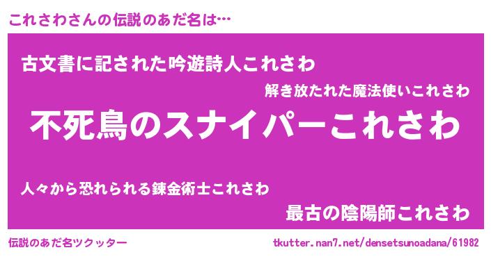 | 女子向けラノベタイトル風あだ名 | 『これさわ姫と円卓の騎士』 |