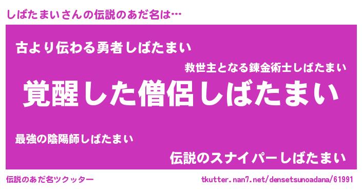| 意味不明あだ名 | 『自称しばたまい』『永久保存しばたまい』 |
