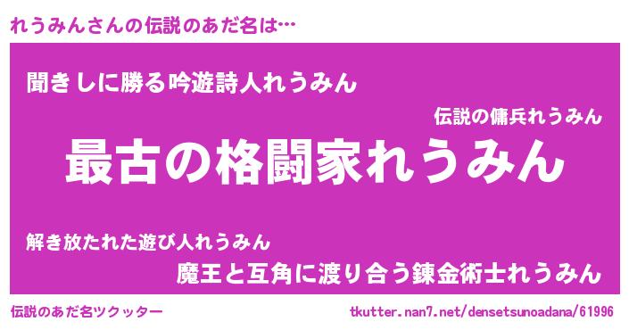 | 意味不明あだ名 | 『れうみんフォーエバー』『自称れうみん』 |