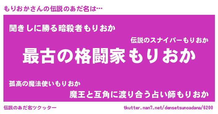 | ヘコむあだ名 | 『豆乳』『もりおか(笑)』『もりもー』 |