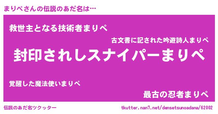 | 男性向けラノベタイトル風あだ名 | 『マリペアートオンライン』 |