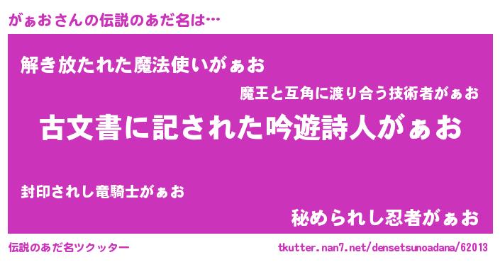 | 意味不明あだ名 | 『永久保存がぁお』『もやし科がぁお属』 |