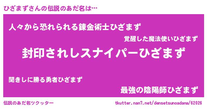 | ヒーロー風カッコイイあだ名 | 『スーパーヒザマズ』『仮面ヒザダー』 |