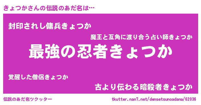 | ファンタジー風あだ名 | 『エターナルキョツカー』『ゼキョトゥ』 |