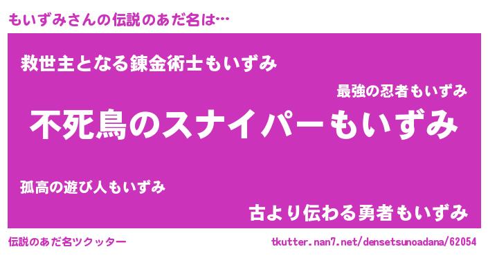 | 男性向けラノベタイトル風あだ名 | 『もいずみの憂鬱』 |