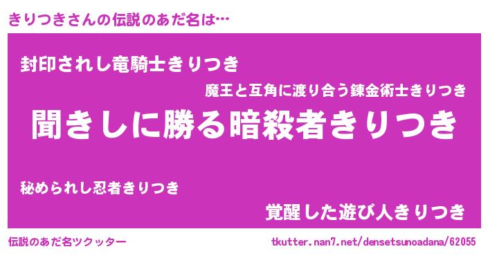 | 胡散臭い通販商品みたいなあだ名 | 『絶対に幸福をもたらす健康食品…その名も「きりつき」』 |