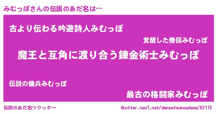 | ヒーロー風カッコイイあだ名 | 『愛の使者みむっぽ』『ネオミムッポ』 |