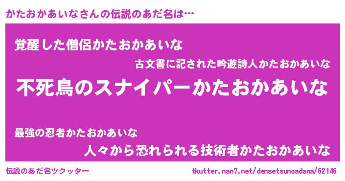 | 胡散臭い通販商品みたいなあだ名 | 『モテモテ間違いなし霊験あらたかなお札…その名も「かたおかあいな」』 |