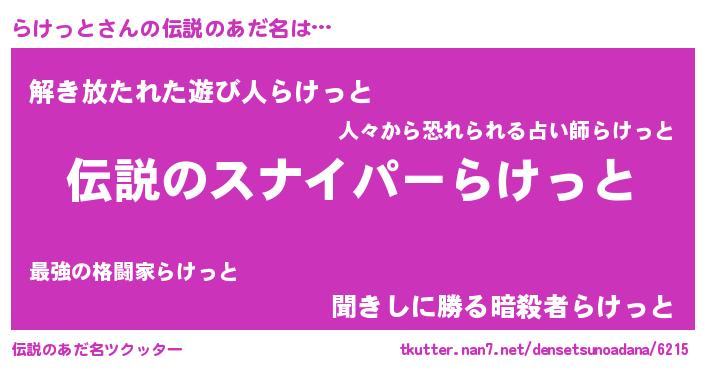 | 意味不明あだ名 | 『ペロリンらけっと』『自称らけっと』 |