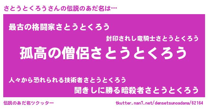 | 意味不明あだ名 | 『とにかく怪しいさとうとくろう』 |