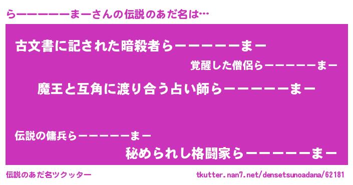 | 意味不明あだ名 | 『自称らーーーーーまー』 |