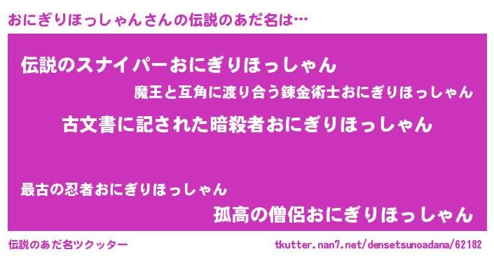 | 意味不明あだ名 | 『永久保存おにぎりほっしゃん』 |