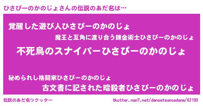 | 意味不明あだ名 | 『もやし科ひさぴーのかのじょ属』 |