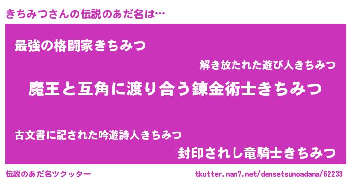 | ヒーロー風カッコイイあだ名 | 『愛の使者きちみつ』『仮面キチダー』 |