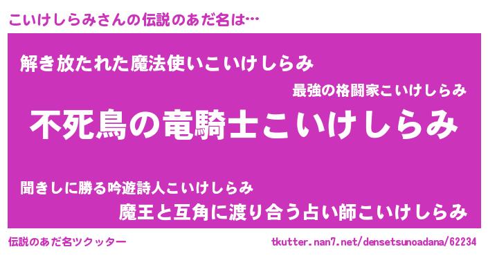 | 女子向けラノベタイトル風あだ名 | 『こいけしらみ姫と円卓の騎士』 |