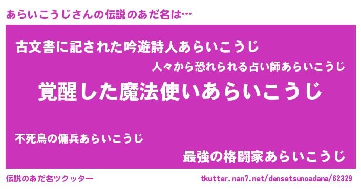 | 女子向けラノベタイトル風あだ名 | 『あらいこうじ様がみてる』 |
